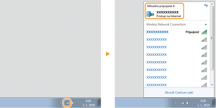 v systémovej lište, aby sa zobrazilo SSID pripojeného bezdrôtového smerovača LAN.