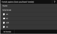 Ak uložíte často používanú veľkosť papiera na tlačidlá <S1> až <S3>, môžete ju vyvolať jedným dotykom. Uloženie vlastnej veľkosti papiera