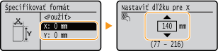 zadajte šírku papiera ![]() ![]() <Y> zadajte dĺžku papiera ![]() ![]()