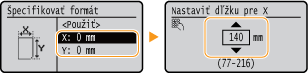 Vyberte položku <X> alebo <Y> a zadajte dĺžku každej strany použitím číselných tlačidiel.