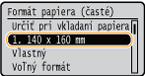 Veľkosti papiera uložené v postupe vyššie možno vyvolať, keď je možnosť <Vlastné> vybratá na obrazovke výberu veľkosti papiera pre zásuvku na papier alebo viacúčelový zásobník.