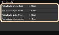 Použitím funkcie <Nastavenia funkcií> v ponuke nastavení ovládacieho panela môžete upraviť polohu tlače pre všetky tlačové úlohy bez ohľadu na zdroj papiera. Polohu tlače možno upraviť v krokoch po 0,5 mm od -50,0 mm do +50,0 mm. <Krátky okraj presahu/Dlhý okraj presahu>