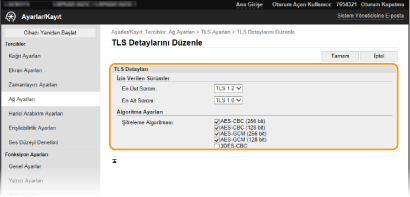 TLS'nin [En Üst Sürüm] ve [En Alt Sürüm] öğelerini belirtin.