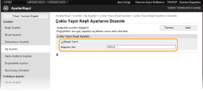 Makineyi, aygıt yönetim yazılımı çok noktaya yayın keşif paketlerine yanıt verecek şekilde ayarlamak ve aygıt yönetim yazılımı tarafından izlemeyi etkinleştirmek için onay kutusunu seçin.