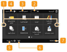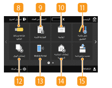 في لوحة التشغيل. استخدم هذه الشاشة لتحديد الإعدادات وتسجيل الوظائف.