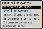 Podeu establir si cal mostrar l'adreça IP a la pantalla <Monitor estat> seleccionant <Mostrar adreça IP>.