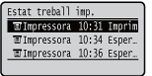 Mostra l'estat actual de l'element seleccionat. A l'exemple següent apareix la pantalla <Treball d'impressió>.
