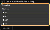 Si deseu la mida de paper que utilitzeu freqüentment als botons <S1> a <S3>, podeu recuperar-los mitjançant tecles abreujades. Desament d'una mida de paper personalitzada
