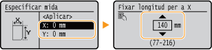 Seleccioneu <X> o <Y> i introduïu la longitud de cada costat amb les tecles numèriques.