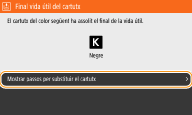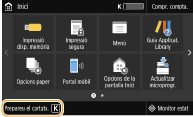 Si aquest missatge es mostra mentre es rep un document d'I-Fax (Fax per Internet), l'equip no imprimeix a fi d'evitar que la impressió quedi borrosa. En canvi, les dades rebudes s'emmagatzemen a la memòria. Per continuar imprimint encara que la quantitat restant al cartutx de tòner sigui baixa, establiu <Con. imprimint quan cart. baix>/<Cont.imprim.quan tinta cartutx baixa> en <Activat>. <Con. imprimint quan cart. baix>/<Cont.imprim.quan tinta cartutx baixa>