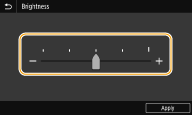 Можна змінювати багато параметрів, пов’язаних із дисплеєм, наприклад мову відображення вмісту: <Display Settings> Для змінення екрана, який автоматично відображається, коли апарат не використовується протягом певного визначеного проміжку часу: <Function After Auto Reset> Можна змінювати багато параметрів, пов’язаних із доступністю, наприклад швидкість прокручування: <Accessibility> |