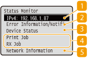 Відображення IP-адреси на екрані <Status Monitor> можна задати за допомогою параметра <Display IP Address>.