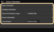 Виймання пристрою пам’яті USB <Secure Print Memory Usage>Відображає об’єм пам’яті, що використовується для збереження даних захищених документів.