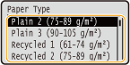 Якщо потрібно часто змінювати папір для завантаження, виберіть параметр <Free>. Це зменшить кількість кроків, які необхідно виконати під час кожної зміни. Проте слід пам’ятати, що в такому разі апарат друкуватиме, навіть якщо завантажений папір відрізняється від типу паперу, указаного в драйвері принтера.