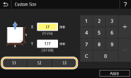 Формати паперу, зареєстровані під час виконання описаної вище процедури, можна викликати, вибравши <Custom> на екрані вибору формату паперу для шухляди або багатоцільового лотка.