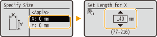 Виберіть <X> або <Y> і введіть довжину кожної сторони за допомогою цифрових клавіш.