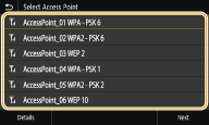 Виберіть маршрутизатор бездротової локальної мережі та натисніть <Details>. Щоб повернутися до вихідного екрана, виберіть елемент