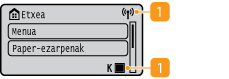 Toner-kartutxoetan gelditzen den kantitatea bistaratzen du etapetan. Hau ezkutuan dago Etxea pantaila aktibo dagoenean.