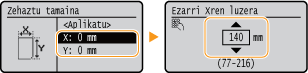 Hautatu <X> edo <Y> eta sartu alde bakoitzaren luzera zenbaki-teklak erabiliz.
