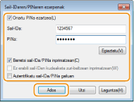 Sakatu aukera hau ID eta PIN zuzenak sartu direla egiaztatzeko. Funtzio hau ez da erabilgarri egongo makina eta ordenagailua USB edo WSD (web zerbitzuak gailuetan) ataka baten bidez konektatuta badaude.