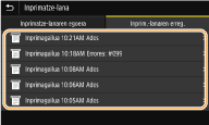 Hautatu haren egunkaria egiaztatu nahi duzun dokumentua.<Ados> agertuko da dokumentu bat ondo inprimatu bada eta <Errorea> agertuko da dokumentu bat ez bada inprimatu, ezeztatu egin delako edo erroreren bat gertatu delako.