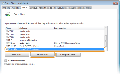 Makinaren IP helbidea aldatu baduzu edo inprimagailuaren kontrolatzaileak instalatzerakoan ataka mota okerra hautatu baduzu, gehitu ataka berri bat.