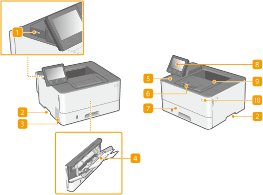 Abra a tampa frontal ao substituir cartuchos de toner ou remover papel encravado dentro da máquina.