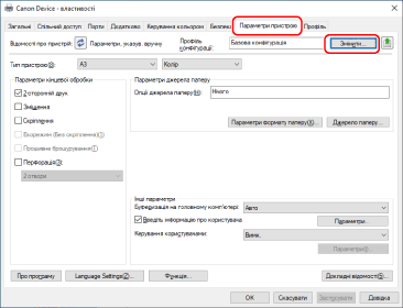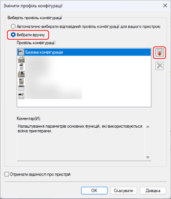 ВАЖЛИВОЯкщо не вибрано профіль конфігурації, придатний для використовуваного пристрою, деякі функції пристрою можуть бути недоступні.