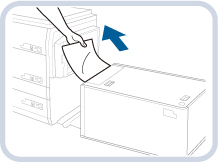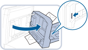 Cuando vuelva a conectar el Depósito POD Sencillo XL A al Depósito de Papel Multibandeja D, confirme que la tapa frontal del Depósito de Papel Multibandeja D quede adecuadamente cerrada.