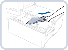 Asegúrese de que ha cargado el papel correctamente en el área de apilamiento cuando abra el depósito de papel. Si carga el papel incorrectamente o el papel permanece en el área de apilamiento, vuelva a cargar el papel de manera correcta. Podría ocasionar que el papel se pliegue o atascos de papel.