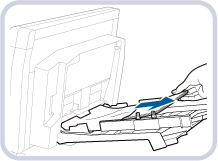 | Extraiga el papel atascado desde el exterior de la Bandeja de Alimentación C. |