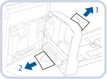 Extraiga el papel atascado en el lateral del Depósito de Papel Multibandeja D.