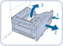 | Sujete el depósito de papel por el tirador y sáquelo hasta el tope. |