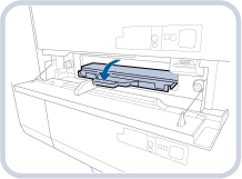 Introduzca con cuidado el depósito de papel hacia el interior del equipo hasta que encaje en su sitio y quede totalmente cerrado.
