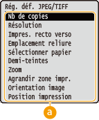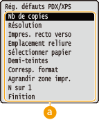 ()  <Régl. impression USB>    <Rég. défauts PDX/XPS> ou <Rég. déf. JPEG/TIFF>    Sélectionnez l'option de réglage    Changez la valeur par défaut de l'option sélectionnée