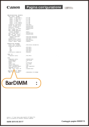 Stampare la Pagina config. e verificare che "BarDIMM" sia presente in "PCL" Se "BarDIMM" è presente, la ROM è installata correttamente. ![]() Se "BarDIMM" non è presente La ROM non è installata correttamente. Rimuovere la ROM dalla macchina e riconnetterla. | ![]() |