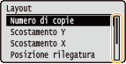 È possibile specificare varie impostazioni relative alla visualizzazioni, quali la regolazione dello schermo e la lingua, usando <Menu Controllo> nel menu delle impostazioni del pannello operativo. Menu Controllo