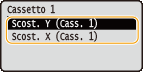 Scost. Y (Fr./retro)> e <Scost. X (Fr./retro)> consentono di regolare la posizione di stampa nella prima pagina (lato anteriore). La posizione di stampa nella seconda pagina (retro) verrà regolata in base ai valori impostati per ciascuna alimentazione carta.