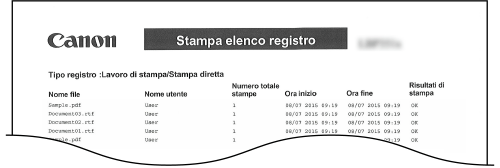 È possibile stampare un registro dei documenti stampati dal computer, in formato elenco.