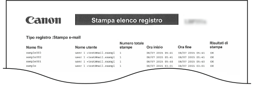 È possibile stampare le impostazioni e un registro di stampa dei rapporti, in formato elenco.