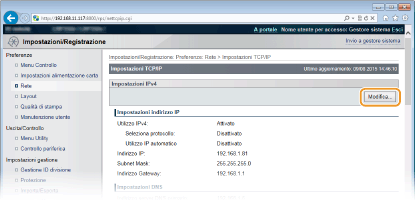 Configurazione DNS IPv41 | Fare clic su [Modifica] in [Impostazioni IPv4]. ![]() |