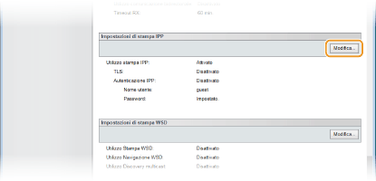1 | Fare clic su [Modifica] in [Impostazioni di stampa IPP]. ![]() |