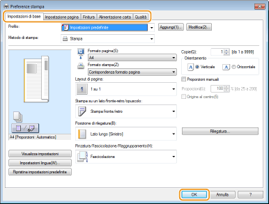 Specificare le impostazioni di stampa necessarie e fare clic su [OK].