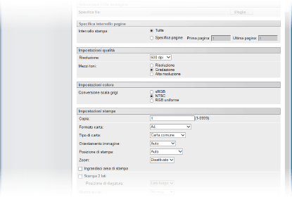 [Specifica pagine] | Selezionare per specificare l'intervallo di stampa. Questa impostazione non è disponibile per i file JPEG. |