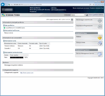 Digitare "http://(indirizzo IP della macchina)/" nella barra degli indirizzi e premere tasto [INVIO].