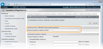 Digitare la password del Gestore sistema in [Password gestore sistema corrente].