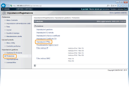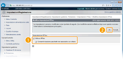 Quando si utilizza IPSec nella macchina, selezionare la casella di controllo. Quando non si utilizza, deselezionare la casella di controllo.