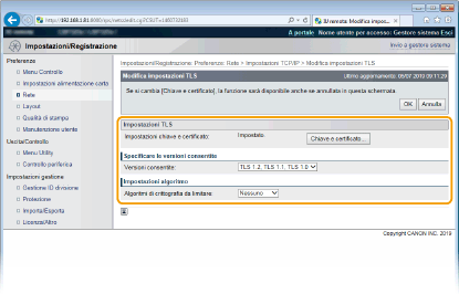Fare clic su [Modifica] in [Impostazioni TLS].