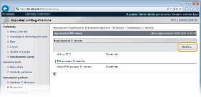 1 | Fare clic su [Protezione]  [Impostazioni IU remota]. |