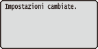 Specificare per quanti secondi viene visualizzato il messaggio che informa della modifica di un'impostazione. Se si seleziona <Disattivato>, il messaggio non verrà più visualizzato. | ![]() |